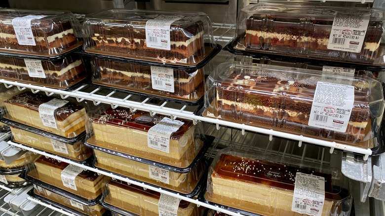 The gargantuan sizes aren't limited to pantry items. Costco's bakery section boasts a half-sheet cake that clocks in at a whopping 9.5 pounds – enough to feed up to 48 people. Two of those pounds are made of vanilla or chocolate cheesecake mousse, while the rest comes from the (white or chocolate) sponge and a generous layer of buttercream frosting. "Just had a vanilla one this weekend," wrote one Reddit user. "Never had it before. I ate three pieces at the kids' party. The other dads did too. It's great cake!"