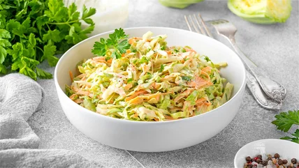 Instead of making sweet and tangy coleslaw dressing with mayo, provide this iconic salad with an entirely new and unexpected flavor profile. Greek tzatziki sauce is primarily composed of thick Greek-style yogurt, shredded cucumbers, garlic, and a variety of spices and fresh herbs such as fresh mint or dill. Beyond giving your coleslaw a new and unexpected taste, homemade tzatziki sauce provides an added boost of nutrition.
