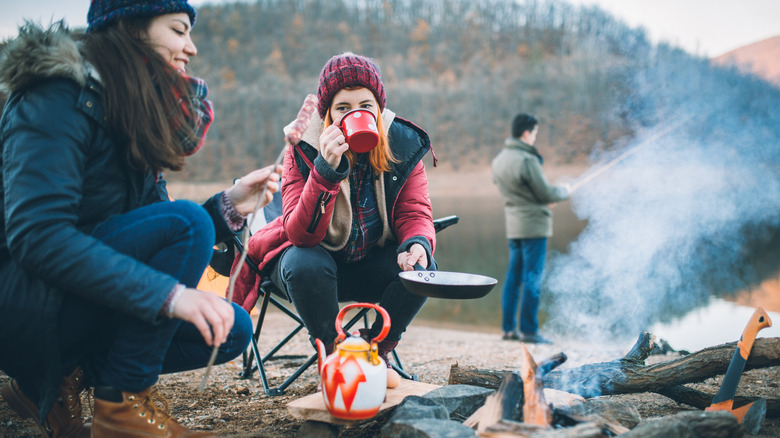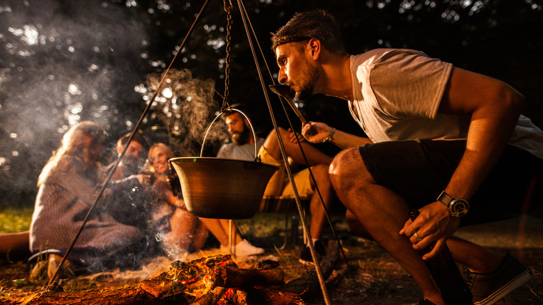 Although it's not the first dish that comes to mind when dreaming up camping trip provisions, fondue was made for campfires and outdoor hangouts. Whether it's made with decadent chocolate or savory broth, fondue is a communal meal that brings foodies together around a melted pot of dippable food. And as long as you can kindle a fire, you can keep the fondue going until it's gone. Of course, no fondue is as classic as cheese fondue, and although camping under the stars and sleeping with the bears is tiring, restaurant-worthy brie cheese fondue makes a primitive experience feel luxurious.