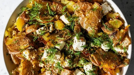 Crispy smashed potatoes have been showing up on a lot of menus and dinner tables in the past few years, and for good reason. They're crunchy and toasty on the outside and soft on the inside, the perfect textural juxtaposition. When you use them in a potato salad, you'll get all that flavor and crunch, plus fresh herbs and tangy dressing. It doesn't require any special equipment to make, and you were already going to boil the potatoes anyway, so all you have to do is squish and roast your taters.