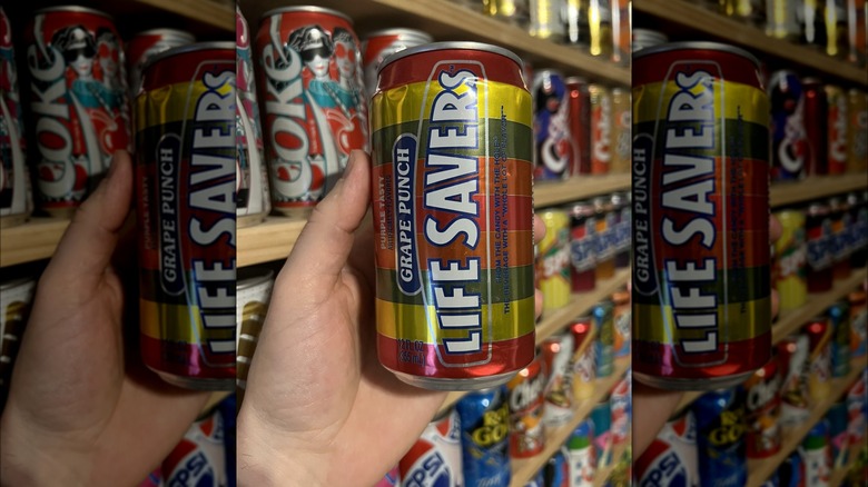 If you don't remember LIfe Savers soda, that's probably because it wasn't around for very long. Created in the 1980s and released after successful taste tests, Life Savers soda was available in five flavors (just like the hard candies), but only some of the flavors were the same flavors as the candy. There was a pineapple, orange, and lime Life Savers soda, but the candy's cherry and lemon flavors were swapped for fruit punch and grape for the sodas. Despite the initially positive feedback, Life Savers soda ultimately didn't resonate with consumers, and by 1982, it was discontinued.
