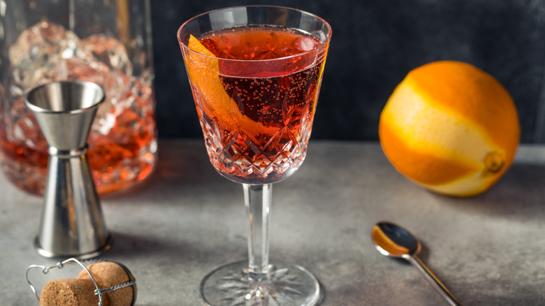 Another classic marker of an aperitif is a low ABV, which is where a Negroni strays from tradition. Swap your gin for soda water if you'd prefer to go light on the booze before dinner. The refreshing adaptation isn't an adaptation at all but rather the precursor to the Negroni. As Bourdain explained on "Late Night Eats," the Negroni was born from a Venetian man's desire for a stronger version of the Americano.