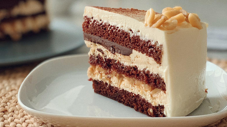 The good news is that his recipe comes with a super easy way to whip up a peanut butter frosting that might just be the perfect way to top a vanilla cake for a peanut butter flavor that's not too over-the-top. (Alternatively, you could definitely reach for a chocolate or devil's food cake and decorate with halved or quartered Reese's peanut butter cups on top. Go ahead and take credit for that — we'll share!)