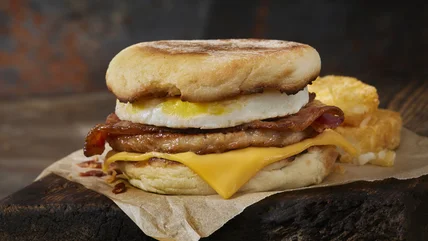 Once your timer goes off, all that's left is to take your sandwich out of the fryer, stack the toasted bread on top of the cooked egg and cheese, and it's ready to eat. If you're on the go, simply wrap it up with a piece of aluminum foil like a fast food sandwich, fill up your travel mug with some hot coffee, and get your day started!
