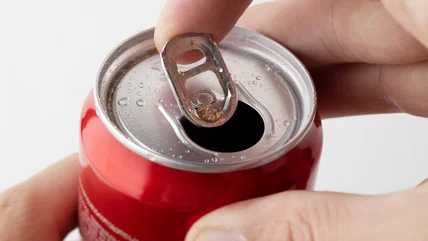 There's a basic tab position with a functional purpose that you might not be aware of and it can help control that foamy fizz. After opening the can, leave the tab in the straight-up position. When the can is tilted to pour the soda into a glass, it can balance inside of a glass or cup without tipping over or falling because the metal tab will hold it in place. This allows the soda to pour into the glass in a way that reduces foam and does it without you needing to do a thing.