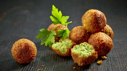 Now that you've leveled up your falafel recipe, you'll need to do the same with your servings. As falafel tends to be a drier food, they go great with hummus and yogurt dressings. A creamy lemon hummus or honey tahini dressing will not only fit the flavor profile of your falafel, but draw out more of the sweetness in your pistachios. Oranges famously pair well with pistachios, so why not add a few segments to a pita along with your falafel for a citrusy bite. You can also add some moisture to this dish by replacing a pita with lettuce cups.