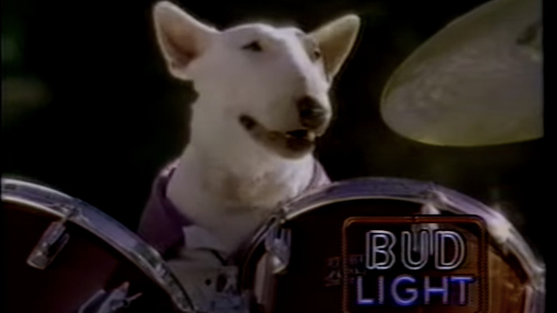 The cool canine debuted on screens sitting shotgun in a Cadillac, then later playing the drums while a group of "Spudettes" sang all about how the canine's love for Bud Light. The bull terrier was often seen wearing Hawaiian shirts or sunglasses, and always promoting a glass of Bud Light. Spuds MacKenzie even made an appearance on "Live with Dick Clark," where the Spudettes tried to dispel rumors that the pup was a girl.