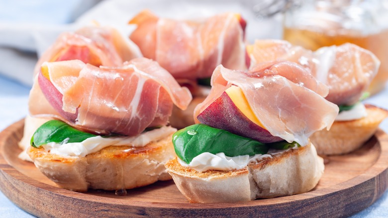 If you're really a lover of the classic Italian bruschetta, there's no need to abandon your tomatoes; they pair well with peaches, so you can combine them — or even swap in some sun-dried tomatoes for a savory boost and textural contrast, too. And if you're not a fan of peach, this preparation is just as satisfying with another fruit of your choosing. Apricots, plums, and nectarines are all great substitutions, but you can even lean toward a tropical vibe with mango or pineapple.