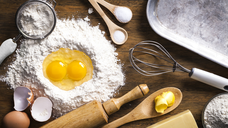 There's an undeniable charm to the delightfully named sunshine cake, which is prominent in a number of vintage cookbooks. The bright cake came into existence alongside angel food cakes, to which they are remarkably similar. Angel food cakes are made using an unprecedented amount of egg whites, and in order to not waste all of the accompanying yolks, clever bakers came up with the sunshine cake to put those yolks to use, resulting in a slightly denser dessert. Some sources say that it's named for the pale yellow color that's revealed when you cut into it, and it might also have something to do with the reason it was developed in the first place.