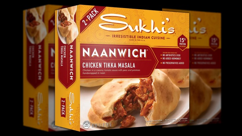 Keep in mind that you can also air fry frozen microwave dinners if you want a delightfully crispy exterior texture. When air frying frozen food, be mindful of how much you're adding to the basket at once. While it ultimately depends on the size of your air fryer, it's probably best to cook one naanwich at a time to ensure there's enough room for hot air to circulate. Also, you want to turn the naanwich over at least once while cooking to guarantee an even doneness on both sides. Sukhi's tasty frozen meal shows that you can have quality and convenience in the same package, which is why it's the favorite of so many discerning shoppers.