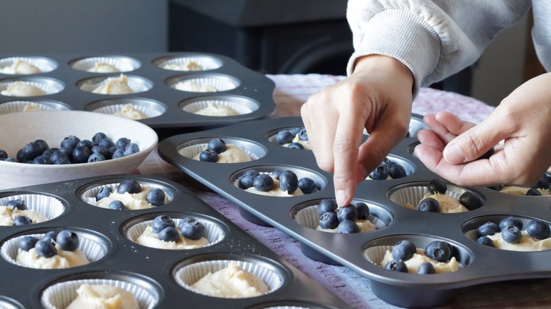 In a YouTube demonstration video, Paul Hollywood shared additional tips for his star-satisfying muffins. He mixes batter by hand (and suggests that kids will enjoy the process, too). This allows him to get a sense of the texture, aiming for a soft and pliable mixture substantial enough to prevent blueberries from sinking (another common muffin-making mistake). He adds a little milk if it feels too dry.
