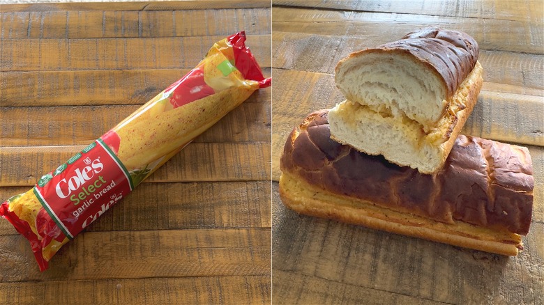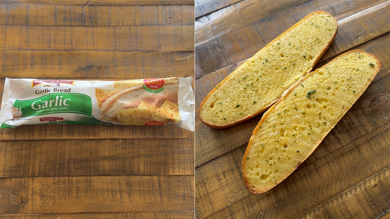 First impressions are everything, and for this option, we didn't have a great start to our relationship. I struggled to break the bread apart even after letting it sit. When I finally did get the loaf halves apart, the action had caused the bread to pull the interior off one of the sides, leaving an uneven coating on the top of the loaves. What was there was a very light coating of oil, garlic, and butter that didn't look super appetizing. And the taste definitely followed my assessment.