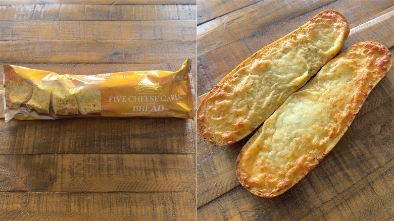 I honestly tried to put New York Bakery Five Cheese Texas Toast lower on my list, but with its epic flavor profile, that wasn't happening. This OG brand is known for killer Texas toast options, and truly, they are the stars of this frozen garlic bread show.