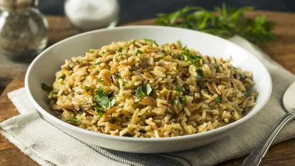 Segal also has a plant-based recommendation. She says, "For a vegetarian option, pair it with roasted vegetables or a hearty stew." While flavors are key in food pairings, don't underestimate the impact of a nice textural contrast. In this case, there's one ingredient, cornstarch, that you need for crispy roast veggies, which can help balance the softness of your rice dish. As for vegetable stews, opt for robust vegetables like mushrooms, tomatoes, onions, carrots, potatoes, and celery for a satisfying meal. Segal's sage advice proves that rice pilaf is as adaptable as it is pleasing to the palate.