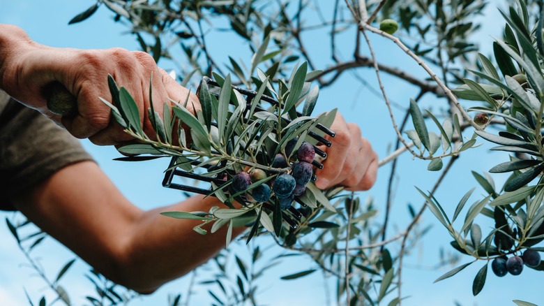 Olive oil is more than just an everyday ingredient for making marinades and salad dressings. It's a part of human history. It's been a staple in our diets for at least 8,000 years, which means humans have been squeezing oil from olives almost as long as civilization itself. Despite its ancient origins, however, it seems like there are more types of olive oil at the grocery store than ever these days. The latest trend is bottles of single-origin oil, which are indeed different from bottles of blended oil, but don't buy into any dubious health claims or overpay for fancy packaging. The only thing you need to know is that for many, the term "single-origin" is used to refer to oil that was pressed from olives that were grown and harvested at only one location. (That being said, there technically isn't an official — or even unanimously agreed upon — definition for what single-origin olive oil actually is, or whether the location itself is as specific as a single farm or as overarching as an entire region.)