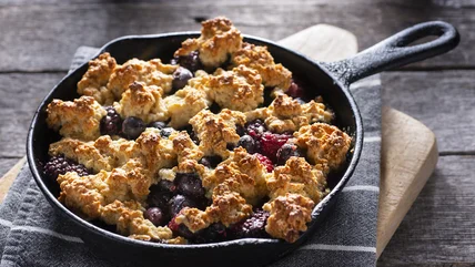 However, if you cook this dessert on the grill or in a smoker, the smoky element that it gains can give your cobbler another layer of flavor beyond sweet to enjoy. To pull off this sweet feat, simply prepare your fruit and batter as you would normally in a cast iron skillet and cook it on your grill or in your smoker at 350 degrees Fahrenheit until your fruit of choice's juice is bubbling and the batter has turned golden brown. The burning wood or sweating wood chips will create a beautiful smoke that infuses your cobbler. But if you are going to smoke your cobbler, pay attention to the temperature and wood that you use.