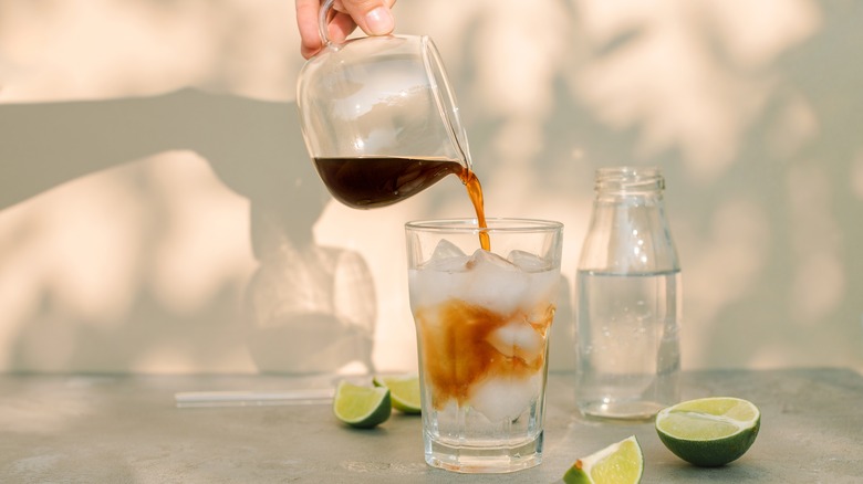 There are a few more factors to consider to ensure an exemplary espresso tonic. Firstly, avoid using room-temperature tonic — even though it's being poured over ice, an un-chilled tonic will start to melt the ice and water down the drink unnecessarily fast. The order of the pour also matters. Start by filling the glass with ice, then add the tonic water before you add the hot espresso. The other way around can sometimes cause the carbonation to overflow, and occasionally you'll get an unpleasant, clumpy foam. Aesthetically speaking, the order will also let you float the espresso on top of the tonic, creating an appealing differentiation of light and dark layers (but you might want to mix afterwards if you want a uniform taste).
