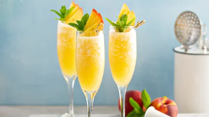 Most cheese plates offer a variety of cheese styles. If you're tasting several kinds of mild or medium intensity cheeses like brie, havarti, burrata, or fresh mozzarella, a classic mimosa or peach Bellini with sparkling water instead of wine is a great pairing choice, according to Cody Goldstein. "The bright flavors and high acid work nicely," the mixologist says.