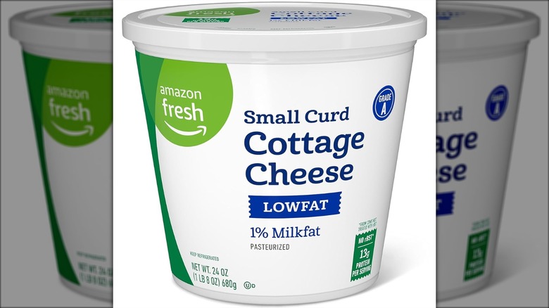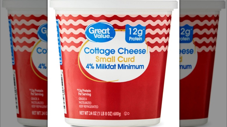 Cottage cheese is one of those things that people always want in their fridge, but they don't want to have to spend a pretty penny on it. That's where Walmart's Great Value cottage cheese comes in. Its 4% Milkfat Small Curd Cottage Cheese is a reasonably-priced, accessible option, with its large tubs ensuring that it goes a long way.