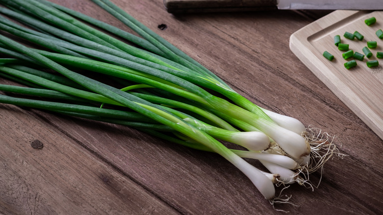 Too much water will certainly ruin your green onions, but on the other hand, nobody likes a dry vegetable, so it's all about finding a delicate balance. When you wash your green onions before storing them, you essentially prepare them for cooking and then delay all your work — this means your onions will spoil more quickly because you've taken away all their outer defenses and filled them with water. However, this doesn't mean you should just chuck your scallions straight into the fridge right after buying them — that's another one of the mistakes you might be making with your onions.