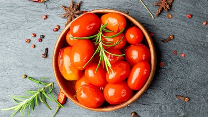 Beyond oil and vinegar, feel free to get creative when choosing spices and herbs. Most tomato marinades include a decent amount of salt and pepper, and chopped parsley, basil, or thyme. To make the flavor pop, add freshly chopped red onion and garlic. Upon making your marinade, you're ready to add this flavorful liquid to fresh ripe tomatoes.