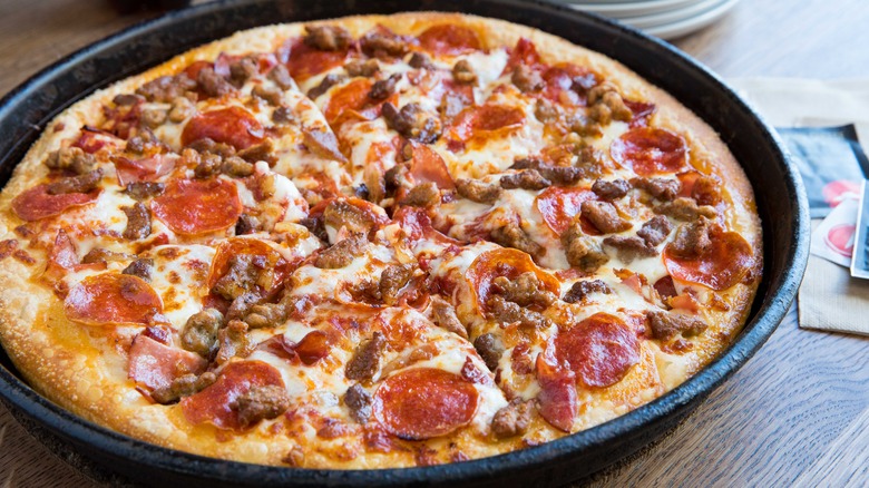 Like all chain restaurants, Pizza Hut has to offer plentiful food at an affordable price, and menu items must remain consistent across locations. It may have nailed its system for this. But, unfortunately, this may have come at the expense of quality for some folks. Pizza Hut ingredients — specifically its dough — appear to have been way more carefully crafted back in the '70s. Nowadays, Pizza Hut is using frozen dough, as revealed by a former employee on TikTok. In the '70s, though, Pizza Huts would make fresh batches of yeast-risen pizza dough in-house, according to a comment on Quora from an employee that worked there during the decade.