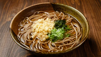 Soba noodles have a nutty taste to them and a chewy consistency. They are also a little grainy and crave simplicity. When served in hot broth, they absorb its flavor and become quite tasty. Try some soba noodles in mushroom broth with taro and kabocha squash for an authentic experience. The recipe blogger further shared that the type of broth used is very specific. She said, "Both types of broth are dashi-based with a soy sauce flavor." These liquids are umami-rich, imparting salty notes as well as sweet. It is often topped with a Japanese-style scrambled egg called tamago toji, or deep-fried flour batter called tenkasu, which is essentially bits of leftover fried tempura.
