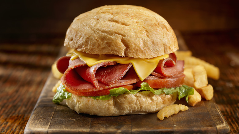 You're not alone: Fried bologna sandwiches are a massively popular comfort food, particularly for the Gen X and Millennial crowd that grew up making these old-school sandwiches for lunch, dinner, or a quick after-school snack. Bologna has been around for a long time — it's generally thought to have been introduced to Americans by German immigrants — and given that it was widely available and affordable, it was a staple through the Great Depression and during wartime rationing. Bologna sandwiches have been there through it all, especially when large groups of people needed feeding on a budget.