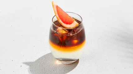 Order matters when you're building an espresso tonic, and it's important to add ice and tonic to a glass first, and then top it with a shot of espresso. Otherwise, your beverage might bubble over. To enhance the citrus notes, you can garnish the drink by rubbing a lemon or orange peel around the rim of the glass, giving it a quick squeeze over the top to release the oils, and then garnishing the drink with the peel.