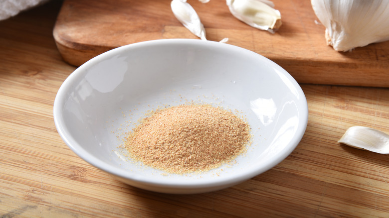 That's why we love using garlic salt. A simple combination of salt and ground garlic, it adds a strong garlic note to anything it's mixed into without the acrid, sharp notes that the raw vegetable provides. As the name suggests, it also helps to season your pesto, giving it extra saltiness and flavor. If you think that your pesto is salty enough already, you can use ground garlic without any salt added. Whichever type you use, just make sure that you give it some time to sit before serving, to allow the garlic flavors to thread into the sauce.