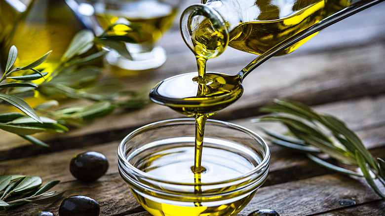Olive oil is a key component of pesto, whether it's store-bought or not. The fragrant oil brings all of your dry ingredients together, and slicks each tiny fleck of basil and morsel of pine nut with a smooth, fatty coating. It's the oil in pesto that gives it its luscious moreish taste, and which diffuses the sharper flavors into something way more mellow and rich.