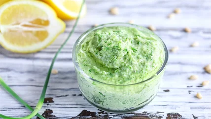 Garlic scapes have a similar flavor to fresh garlic without the peppery undertones. These bright green stems are milder and have a smooth-tasting finish, making them an ideal ingredient for homemade pesto. To experience this summer veggie's distinct flavor, make garlic scape pesto with only a handful of extra ingredients.