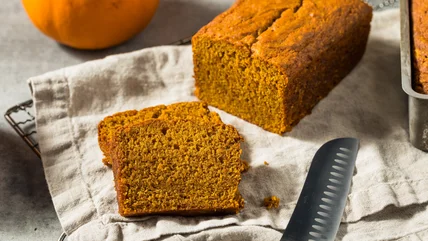 Once you have your loaf pan picked out, if the box mix doesn't have a temperature recommendation listed for making breakfast bread, simply turn the oven to 25 degrees less than what is listed in the instructions for muffins. Then, add 20 minutes to the recommended cooking time. Muffins will bake in about 20 minutes at 350 degrees Fahrenheit, so loaves baked at lower temps need about twice as much oven time. You'll know when the loaf is ready when the sides pull away from the pan and you can poke a toothpick or cake tester in the middle and it comes out clean. Once the loaf is baked, let it cool for at least 20 to 30 minutes before you try to take it out of the pan, then it's ready to slice and serve.