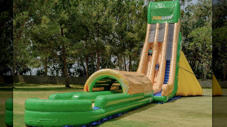 Subway is finishing out their Summer of Footlongs with a splash, and you can get in on the action — literally! After successfully debuting the all-new Footlong Dippers in June, Subway fans will get a once-in-a-lifetime chance to become a Subway Dipper themselves. How? By sliding down the world's first ever Subway Dip 'N Slides, of course. In an email sent to Daily Meal, Subway revealed that three 95-foot long slides will be the mega version of each of the Footlong Dippers: Chicken & Cheese, Double Cheese, and Pepperoni & Cheese.