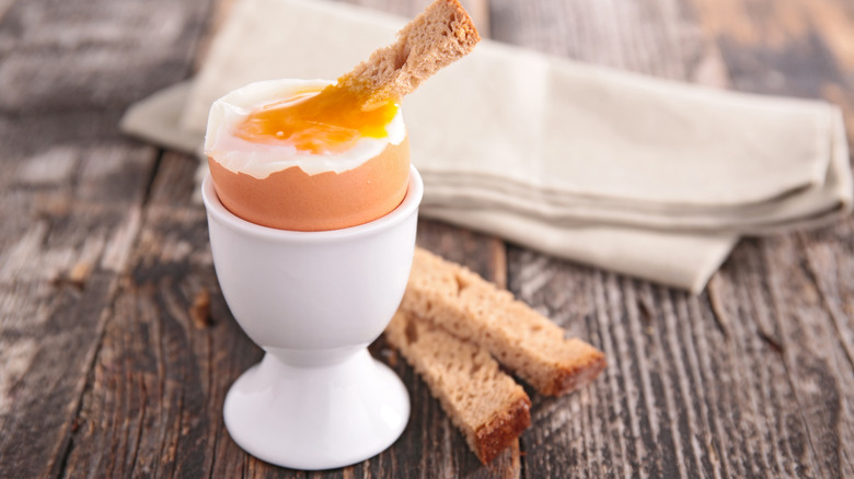 The end result is what separates a hard-boiled egg from a soft. A hard-boiled egg, which is best using old eggs — laid no sooner than 14 days ago, turns the whites and yolks opaque, and as the entrepreneur and television host notes on her website, a hard-boiled egg "yields a rubbery result." Stewart likes to cook her soft-boiled eggs for four minutes. She explains this is the perfect amount of cooking time because "the white is set, but the yolk is still beautiful, gold, and runny."