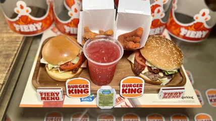 Burger King has always been a keeper of the flame, as the Home of the Whopper has been flame-grilling its burgers since day one. Over the ensuing years, it has not only turned up the heat on the outside of its menu items, but on the inside too. The chain once sold hot and spicy wings and the long forgotten spicy bean burger, while some of the more modern fare includes ghost pepper chicken fries and sandwiches. As the heat rages outdoors this summer, Burger King is adding even more of it to its kitchens with the introduction of the Fiery Menu, which includes Fiery Strawberry & Sprite, Fiery Mozzarella Fries, Fiery Bacon Whopper, Fiery Chicken Fries, and Fiery Royal Crispy Chicken Sandwich. The five limited-time-only items have spice levels "ranging from mild to wild," and Burger King hopes they will both inflame mouths, and make them smile.