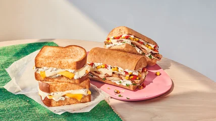 Things are heating up over at Panera Bread. In an email sent to Daily Meal, Panera revealed that the newest items available this season will offer customers two new sandwiches, a new line of avocado toasts, and the return of two bagel flavors. For those in the mood for something spicy this summer, Panera is introducing a new Spicy Fiesta Chicken Sandwich for $11.59 and a Kickin' Grilled Cheese for $7.49. The spicy chicken sandwich is made with grilled chicken on a Ciabatta roll and topped with a salsa verde spread, aged white cheddar, sweet peppers, cilantro, and roasted corn. Panera's spicy grilled cheese option also embraced the salsa verde spread, pairing it with American and white cheddar cheese to add an extra kick to the classic grilled cheese recipe.