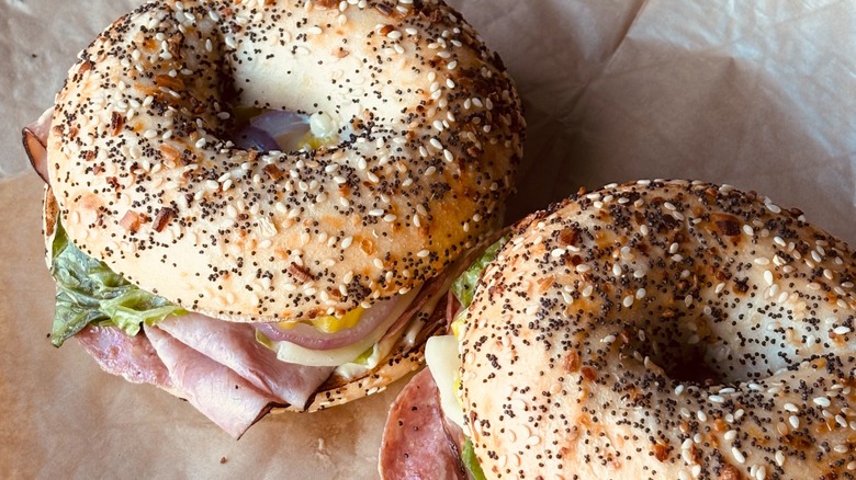 Panera Bread's bagels are a great alternative to traditional sandwich breads — the breakfast sandwich options even came in a respectable third place on Daily Meal's ranking of the best fast-food bagel breakfast sandwiches. With the return of the two bagel flavors, Panera is offering a "Bagels are Back Sandwich Hack" that gets you two sandwiches for the price of one. To utilize this hack, order a full-sized sandwich and replace the bread with your preferred bagel flavor, and Panera will give you two whole bagel sandwiches. You can "hack your sandwich" online and in-store at Panera locations beginning this week.