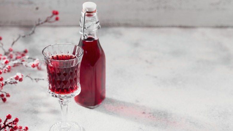 Infusing vodka with cranberries is pretty simple, but there are some things you'll want to keep in mind — starting with the jar. We recommend using a wide-mouthed quart jar with an airtight lid, for a few reasons. Not only will it be easier to add first those fresh or frozen cranberries (and then the vodka), but it'll help you keep all of your berries submerged. And that's key: The alcohol content of the vodka will keep the fruit from getting funky, and the more fruit that's exposed to the vodka, the more flavor will be infused.