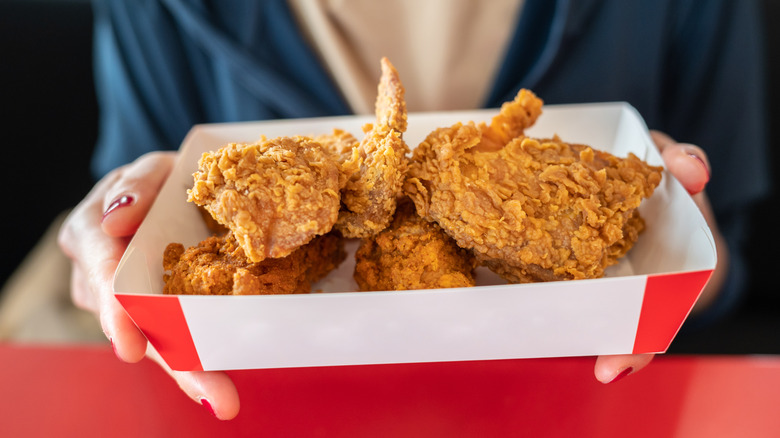 When it comes to the best fried chicken, it's all about the crunch — and Popeye's has its crunch down pat. It uses an egg and flour-based batter that's fried to such perfection that you can hear an audible crunch with every bite. In fact, former Popeyes CEO Cheryl Bachelder told The Advocate that Popeye's uses more batter than its competitors, and more batter means more crunch.