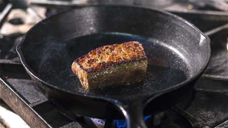 A reliable alternative to grilling steak, cooking steak in both an air fryer and hot skillet will give your meat delicious flavor and texture. Yet, before you forge ahead with this new method, there are a few factors to consider. While standard air fryers tend to preheat quite fast, they also cook food faster. Using a trusty meat thermometer will ensure you don't overcook your steak in the first step.