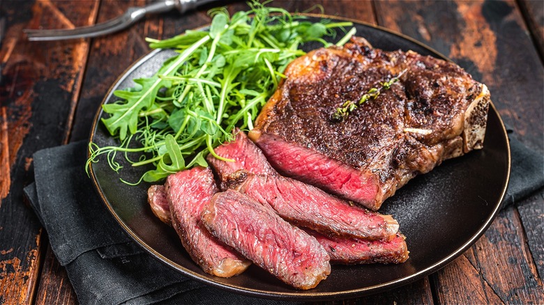 Since its inception in 2010, the air fryer has quickly become the trendy appliance of choice and for good reason. With the use of high heat through a convection fan, you can cook everyday fare in a shortened amount of time, imparting a crispy exterior to foods. The best part about using your air fryer to cook steak is that this handy appliance preheats in flash. To reverse-sear steak in your air fryer, all you need are a couple of thick steaks, your desired seasoning, and a preheated air fryer set to 250 degrees Fahrenheit.
