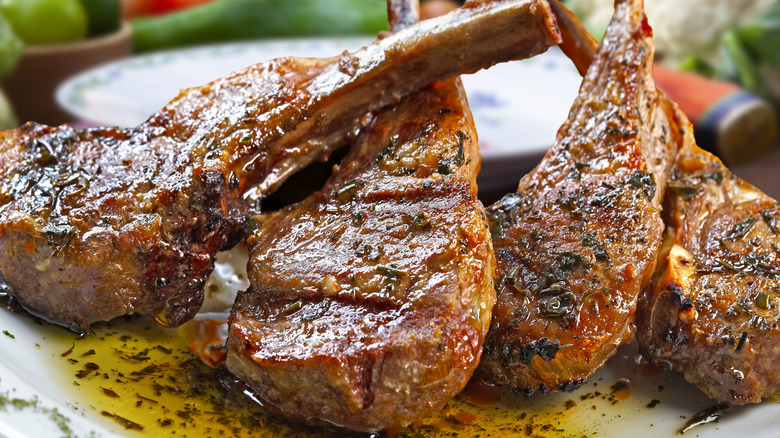 When planning out a flavor profile for your chops, there's a wide range of ingredients that pair well with lamb. Aromatics like garlic, shallots, and onions add depth, while rosemary, marjoram, thyme, and sage are all bright, fragrant and flavorful additions to your dish. That said, mint may be the most famous herb for lamb-lovers. And while mint jelly is an iconic accompaniment, those who prefer a less sweet way to incorporate this ingredient can opt for a recipe like lamb with spring onions and mint, which also features fennel in both seed and bulb form. For a more Mediterranean twist, try Greek style lamb chops which includes oregano and zippy lemon.
