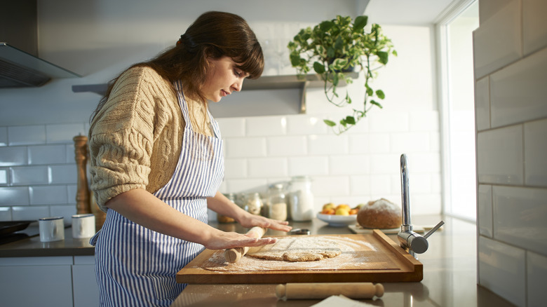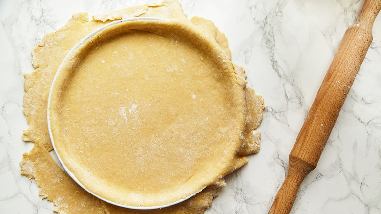 When it comes time to transfer that well-made dough to your pan, stick with your handy rolling pin — after all, it hasn't steered you wrong yet. Roll your dough onto and around the pin, then place the pin over your pan, and simply unroll your dough directly into your pan. Voila! As it turns out, making pie crust from scratch isn't too tricky after all.