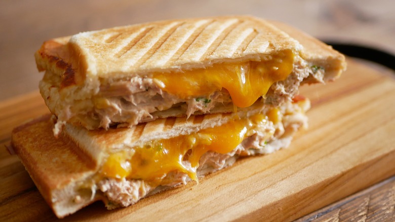 Broiling and pan-frying your tuna melt with pimento cheese are two common ways to toast the bread and melt the cheese, but there are other methods that work well. If you're worried about the cheese not melting evenly or one sandwich cooking quicker than another due to hot spots with the broiler, you can use your air fryer. An air fryer takes away the guess work or repositioning, and will take you just under ten minutes. Additionally, if you have a panini press, this small appliance will have your bread golden and crispy within three to four minutes.