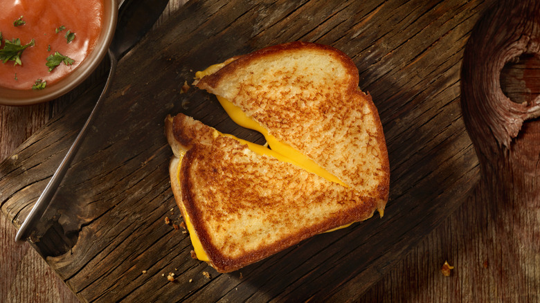 This extra step adds a complex savoriness to your grilled cheese while also improving the overall texture of your sandwich. Apart from frying up a rich, melty delight, you can add more ingredients for an extra filling meal. Halley states, "I like a soft white bread so you can have really thick slices and put a weight on the sandwich as it fries, without the whole thing getting too dense and chewy." To make a well-rounded grilled cheese, consider adding some ham, turkey, or even apples for an added dose of crunchy sweetness. Whether you choose traditional sourdough bread or fluffy white bread dipped in raw scrambled eggs, Max Halley knows how to make a delicious grilled cheese sandwich.