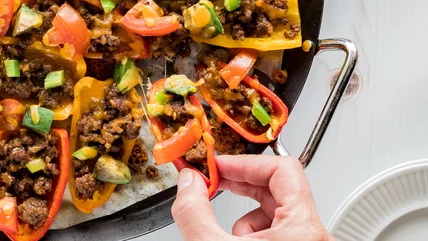 If there's one thing better than a creative way to upgrade an old favorite, it's a creative upgrade that's incredibly easy. Swapping our tortilla chips for bell peppers takes minimal work, especially if your ground beef or chicken is prepped in advance. Cut your peppers into thick, chunky slices that are large enough to hold some toppings but small enough to be bite-sized. (Or, just cut them in half as pictured: That's a great option if you're using this as an appetizer, and everyone can take their own pepper.) Cover a baking tray with the pepper slices, add your toppings, cover with cheese, and bake until all the cheese is melted into ooey, gooey, goodness. And that's it!