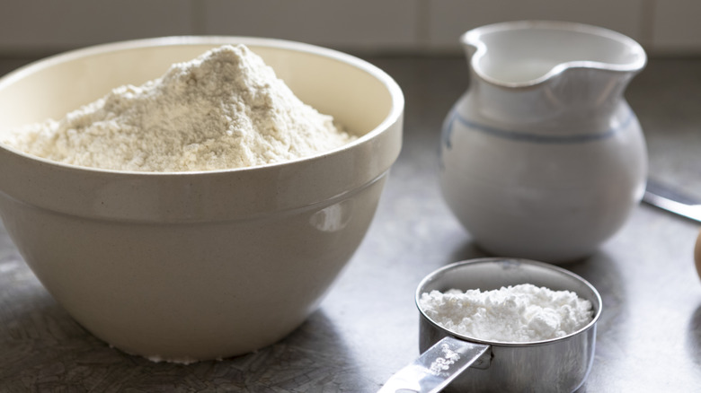 That's why restaurants measure out their ingredients strictly before they even start putting their biscuits together. They often do this by creating a dry mix, consisting of their flour, baking soda, and salt, which stops things from going wrong. "While they are still scratch-made and there is room for error if our process isn't followed or our liquid goods are off, it does help eliminate a lot of the measuring that could lead to mistaking a teaspoon for a tablespoon and making some salty biscuits," McClain says. You don't just have to stop at your dry ingredients, though: Make sure your liquids and butter are carefully portioned out before you start to make your dough, so that you don't make any mistakes or discover that you don't have enough of something halfway through.