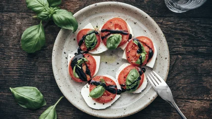 Put together some juicy heirloom tomatoes, a few slices of fresh mozzarella, and sprigs of basil, then top with a drizzle of olive oil and balsamic vinegar, and you have the ultimate Italian appetizer — a Caprese salad. It's a lovely preamble to any dinner and not just the fancy ones. But if you have someone over that you want to impress (or you just want to treat yourself to something nice), one trick that you can use to level up your Caprese salad is to serve it in half an avocado!
