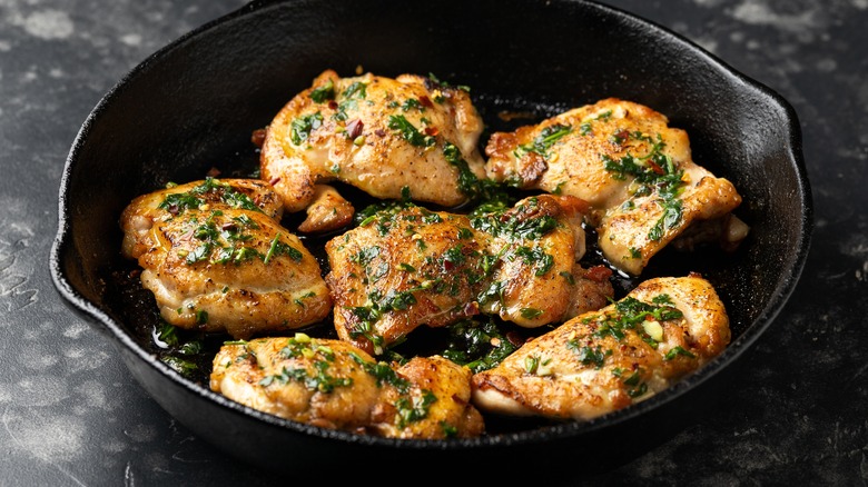Chicken breasts are often seen as the superior cut for cooking. Most recipes call for breasts, and they're the item we're all primed to hunt for in the grocery store. It's easy to see why: Chicken breasts have no risk of having bits of bones, cartilage, or connective tissue in them. However, depending on what you're cooking, going with chicken thighs instead can actually create a better dish in the end.